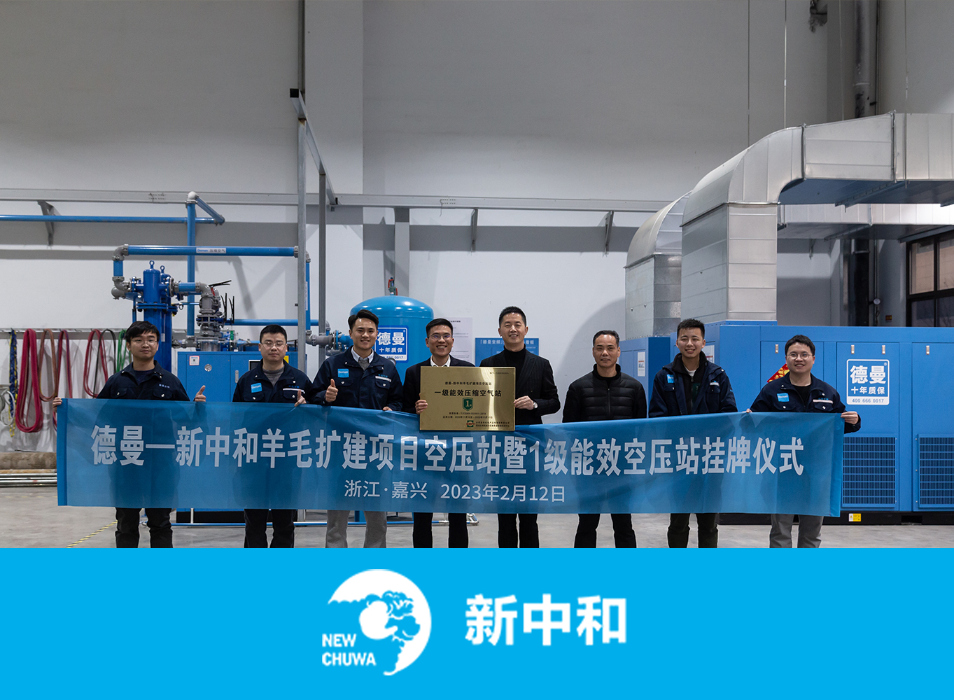 Compressed air powers modern textile equipment, directly contacting yarn, requiring high quality and large consumption. Optimizing its use is key to energy management. Deman built the first "Class 1 Energy Efficiency Compressed Air Station" in Jiaxing for Zhejiang Newchuwa Wool Co., Ltd., achieving annual electricity savings of ≈190,000 kWh